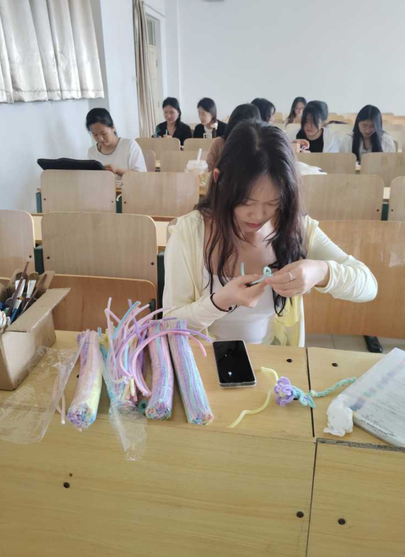 与此同时,扭扭棒DIY活动也在如火如荼地火热进行着。大家充分发挥自己的奇思妙想,用扭扭棒精心制作出了各种造型可爱、充满趣味的小物件,现场不时传来阵阵欢声笑语,氛围十分热烈。