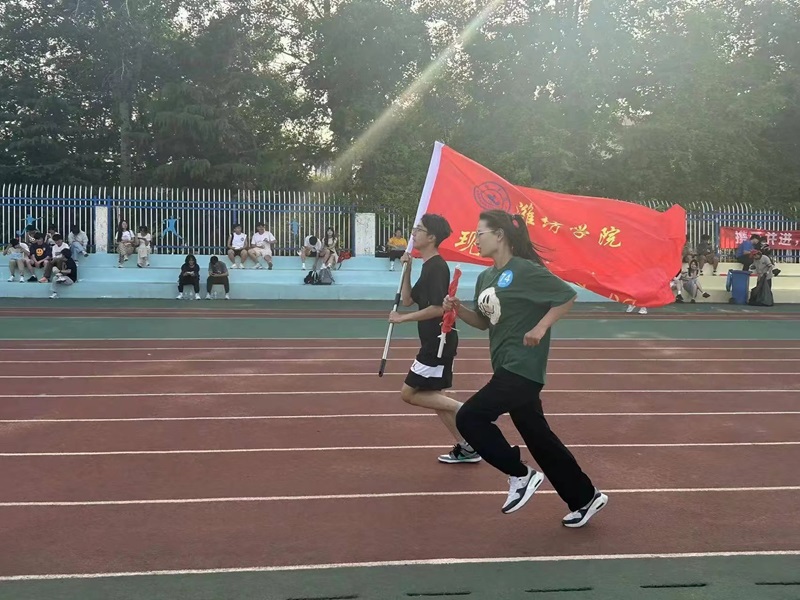 在最后一棒,高举现代农学院院旗的同学跟在了选手后面,奔跑着共同冲向终点。随着最后一名选手冲过终点线,潍坊学院2024年师生接力赛圆满结束,现代农学院凭借着出色的团队配合取得了二等奖的好成绩。