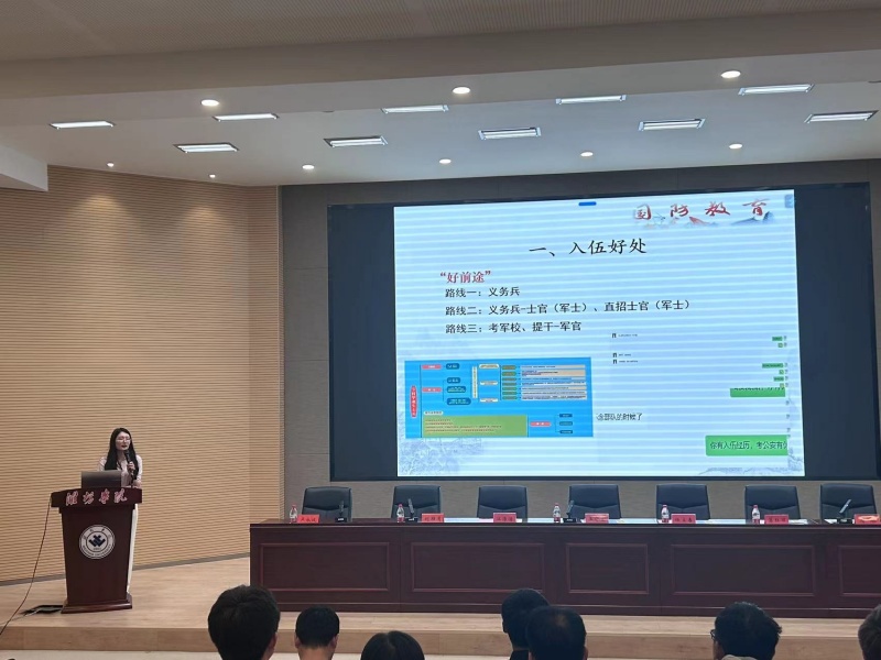 孙婷婷老师重点围绕大学生参军入伍的意义、参军入伍的益处、征兵条件及流程、大学生参军入伍的优待政策等几个方面展开详细讲解。重点介绍了国家及学校的征兵政策,并针对同学们报名信息、体检要求等重点问题进行细致地解答,孙老师通过讲述身边参军入伍的真实事例,消除了同学们心中的的疑虑,坚定了同学们“以热血,致山河”,投身军营的决心。