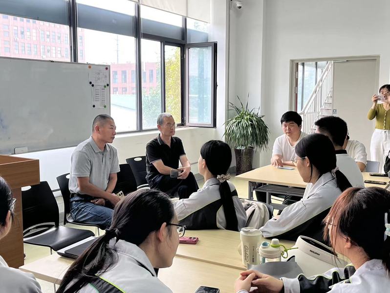 赵鹏俊对同学们进行了亲切的慰问,与学生进行了面对面的亲切交流,详细了解了同学们的学习进度、生活环境以及遇到的问题和困难。他认真听取了同学们在学习、生活方面的意见和建议,还鼓励同学们要珍惜这次难得的学习机会,端正心态、踏实学习,积极面对环境变化带来的挑战。强调,学习是一个持续的过程,需要同学们不断地努力和付出。同时,希望同学们能够学以致用,将所学知识运用到实际工作中,为今后的职业发展打下坚实的基础。在热烈的交流氛围中,歌尔科技产业学院的领导与学生们进一步探讨了学业、职业规划以及未来发展方向。高连宏鼓励学生们不仅要关注当前的学习任务,更要着眼未来,规划好自己的职业道路。同学们踊跃分享了自己的学习心得和体会,他们对学院的关心和支持表示衷心的感谢,并表示将会珍惜这次学习机会,努力提升自己的专业技能和综合素质。