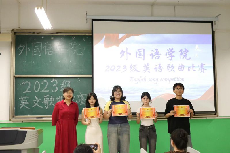 为丰富课外活动,提升学生英语专业素养,6月12日晚,外国语学院于3236教室举办“英”悦之声,“音”你而美——英语歌唱比赛暨英语书写大赛颁奖仪式,2023级英语专业全体学生参与聆听这一场音乐盛宴。