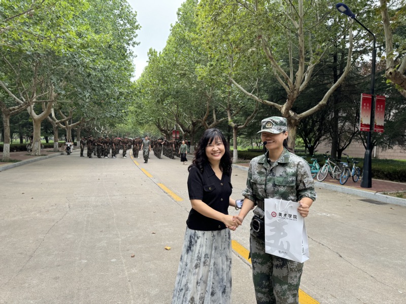 在慰问过程中,学院领导还为教官和新生们送上了节日的礼物和祝福,让远离家乡、在军训中度过中秋佳节的新生们感受到了美术学院大家庭的温暖与关怀。新生们纷纷表示,将不负美术学院领导的期望与嘱托,以更加饱满的热情投入到军训和今后的学习生活中去。