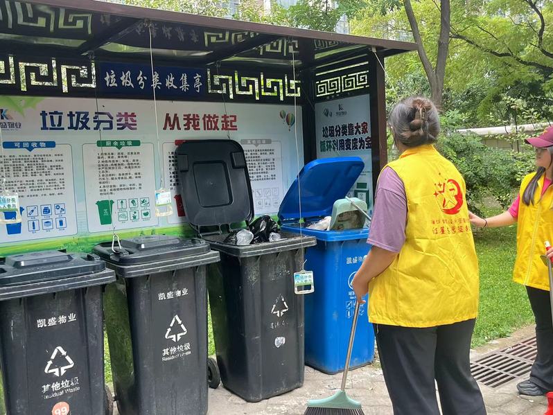 在宣传工作结束之后,志愿者们身着统一的志愿者服装,手持清洁工具,对社区的公共区域进行了全面打扫。他们认真清理垃圾、擦拭公共设施,不怕脏、不怕累,将社区环境卫生打扫得干净整洁。此外,志愿者们还走访了社区的垃圾分类投放点,实地了解了社区垃圾分类工作的开展情况。