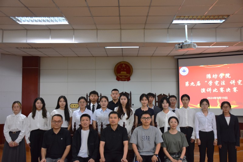 为深入学习贯彻习近平总书记关于宪法的重要论述,增强新时代青年大学生的宪法意识,营造尊法学法守法用法的良好校园文化氛围,9月19日下午,由学校团委主办,法学院承办的2024年潍坊学院“学宪法讲宪法”演讲比赛决赛在人合楼8321模拟法庭教室顺利举行。