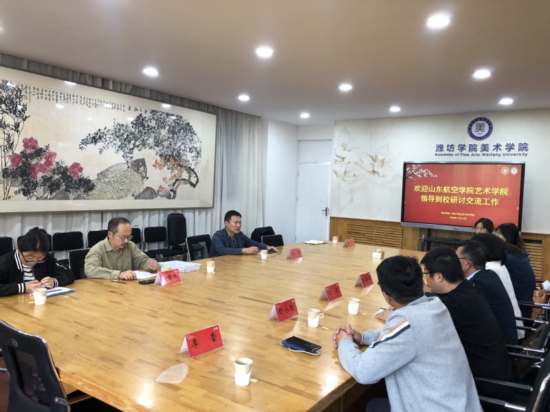 10月14日,山东航空学院艺术学院院长李建军,副院长王强,办公室主任田霞等等一行九人来美术学院交流工作。美术学院党委书记仉新刚,院长王勇,副院长陈隶静,国画教研室主任杨德永、综合办公室主任陈鼎立、教师代表李宁出席座谈会。