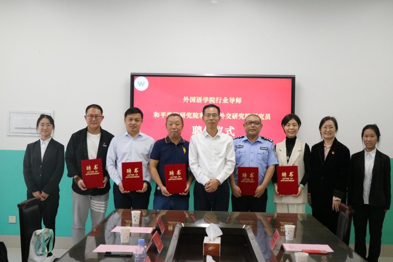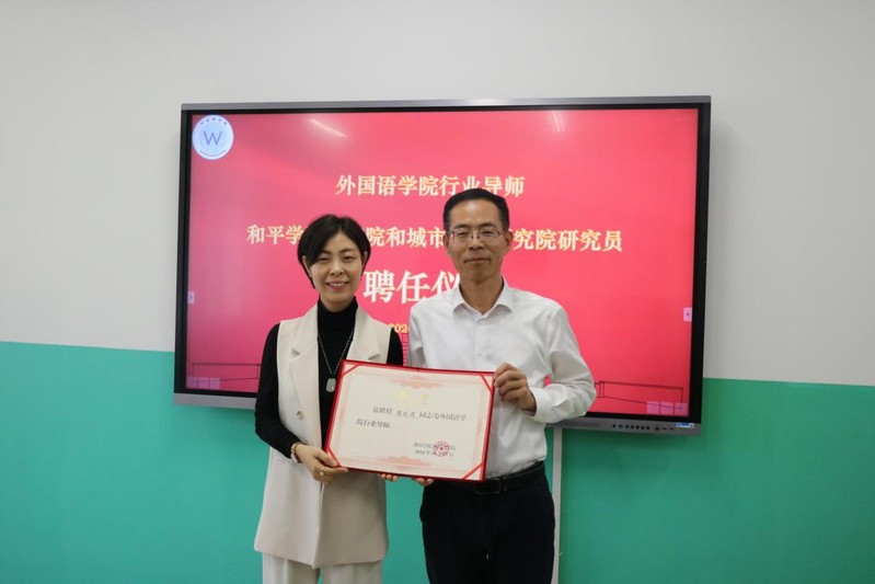10月21日下午,首先于外国语学院举行了外国语学院行业导师、和平学院研究院和城市外教研究院研究员聘任仪式。潍坊市委外办翻译中心主任隋术德,外国语学院1983级校友潍坊市公安局奎文分局一级警长于波、2001级校友中印集团 CEO赵纪福、2005级校友绽放时尚传媒创始人李丰旭、2006级校友雅思之家校长陈晓莉应邀出席聘任仪式,外国语学院院长张学祥、党委副书记张晓丽参加活动。