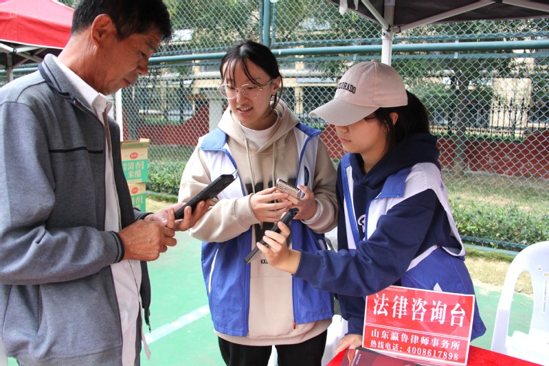 为提高社区居民的法律素质和法治意识,弘扬法治精神,进一步推动法治观念深入基层,营造尊法、学法、守法、用法的良好氛围,10月17日下午,受潍坊市广播电视台的邀请,法学院学生与瀛鲁律所李中仁律师、徐聪聪律师、孙莉总监一起走进金宸公馆小区进行普法宣传活动。