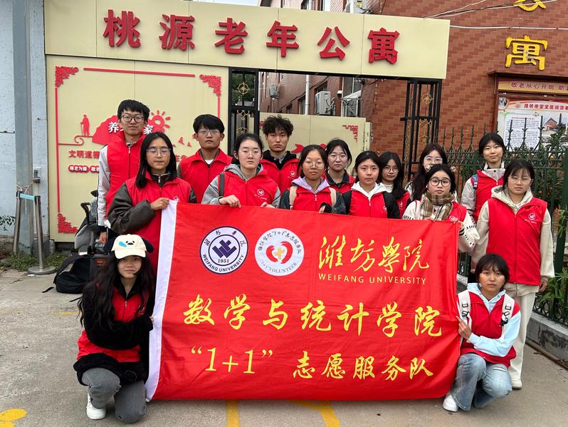 为深入践行中华民族传统美德,数学与统计学院“1+1”志愿服务队于10月19日下午前往潍坊市桃源老年公寓开展志愿服务活动。