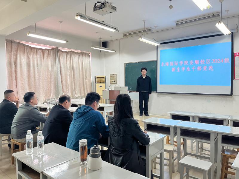 10月21日-24日,北海国际学院举行2024级新生学生干部竞选。北海国际学院党委书记任怀坤、学生工作办公室主任姚灵忠、团委副书记王世浩、教师王永波、王欣仙、于群6人担任评委,2024级各专业新生共有145名学生参加本次竞选答辩。