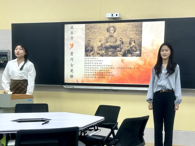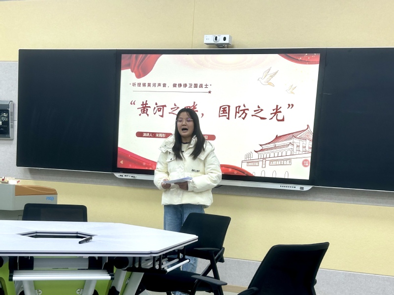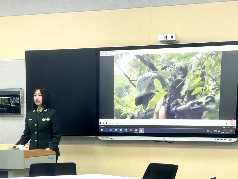 会上,同学们互相讨论,交流演讲心得。并结合PPT和视频模拟决赛场景进行实战演练。同学们身着正装,精神饱满地站在讲台上。她们或深情款款,或激情澎湃,用真挚的情感和生动的语言,讲述着她们对国防的理解与热爱。同学们非常珍惜此次模拟赛场的机会,在演讲过程中,她们不断调整自己的语速和语调,力图找到最佳的赛场状态,呈现更完美的赛场面貌。