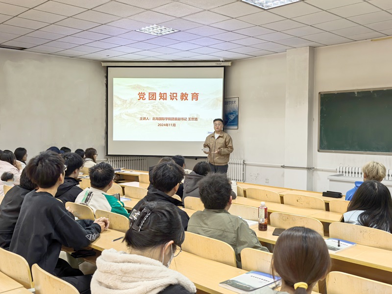 为强化大学生理想信念,提升2024级新生对党团知识的理解与认识,11月17日,北海国际学院在安顺校区1320教室开展2024级新生入学教育党团知识教育课程,此次课程由北海国际学院团委副书记王世浩主讲。