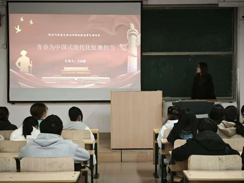 为深入学习贯彻习近平新时代中国特色社会主义思想和党的二十届三中全会精神,11月14日下午,数学与统计学院开展“青春之我奋进现代化”主题宣讲活动,并正式启动“碰杯吧•青年”特色品牌项目。本次活动由2023级学生李姝萱、韩宜君、王远丽主讲,2023级、2024级学生代表参加。