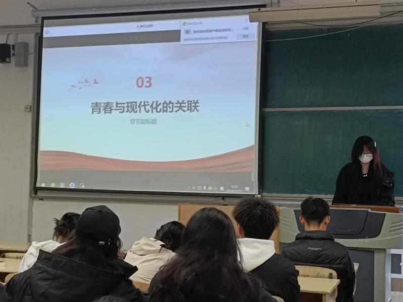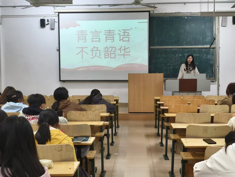 李姝萱以“青言青语,不负韶华”为题,深入浅出地阐述了新时代青年应如何以实际行动践行马克思主义中国化的精神内涵。她通过生动的实例和深刻的分析,激发了同学们的思考和共鸣。韩宜君以“青春与现代化的关联”为题,鼓励同学们勇于担当,增强历史使命感,积极参与社会实践活动,培养创新创业精神。她提出,青年一代应在现代化进程中发挥重要作用,为国家的发展贡献智慧和力量。王远丽以“青春为中国式现代化挺膺担当”为题,通过讲述新时代青年榜样的故事,告诉同学们要争做有理想、敢担当、能吃苦、肯奋斗的新时代好青年,用自己的行动践行社会主义核心价值观,为构建和谐社会、奋进现代化新征程添砖加瓦。