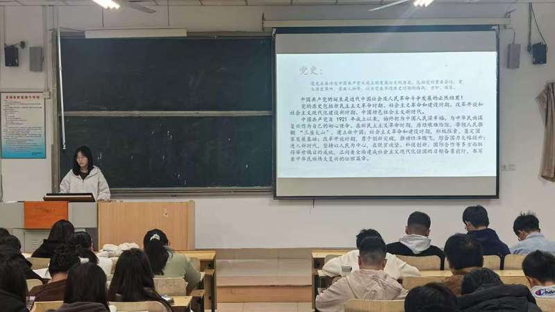 深入贯彻习近平新时代中国特色社会主义思想,引导广大师生学史明理、学史增信、学史崇德、学史力行,2024年11月18日晚,化学化工与环境工程学院青年宣讲团成员2024级化学工程与工艺春季专业1班团支部书记杜文宇、化学工程与工艺春季专业2班团支部书记谭宇涵、制药工程春季专业1班团支部书记扈朝婷在人合楼8212开展以“学五史,守初心,担使命”为主题的宣讲活动。