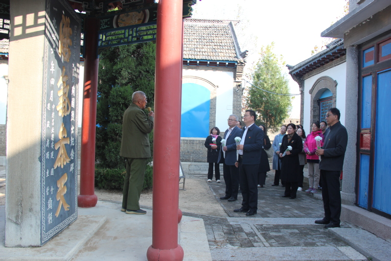 11月21日,教工党支部赴昌邑开展“党建引领提质增效,推动文史学院高质量发展”主题党日活动。在昌邑县抗日殉国烈士祠,守祠人魏铁良先生为大家详细讲解了昌邑抗日烈士的故事,全体教工党员在烈士祠前深深鞠躬,表达了对“一寸山河一寸血,一抷黄土一抷魂”的恭敬和要把他们不怕流血牺牲的精神传承下去的决心和勇气。在马渠村,全体党员认真聆听革命历史讲解,仔细查看革命家书、手稿等珍贵历史资料,瞻仰土炮、土枪、军号、水壶等革命文物,深切了解革命老区人民可歌可泣的英勇事迹、革命先辈追求真理及民族独立的豪情壮志,感受峥嵘岁月里顽强不屈的斗争精神、敢于斗争并敢于胜利的鲜明品格。任立春就抗日七支队、八支队相关问题与魏先生进行了深度探讨与交流。陈德正对魏先生对于红色精神的高水平讲解给与充分肯定和赞赏,并表示要将红色文化精神与业务紧密融合,将其贯穿在学院博物馆学申硕全过程,力争取得文科申硕工作新突破。