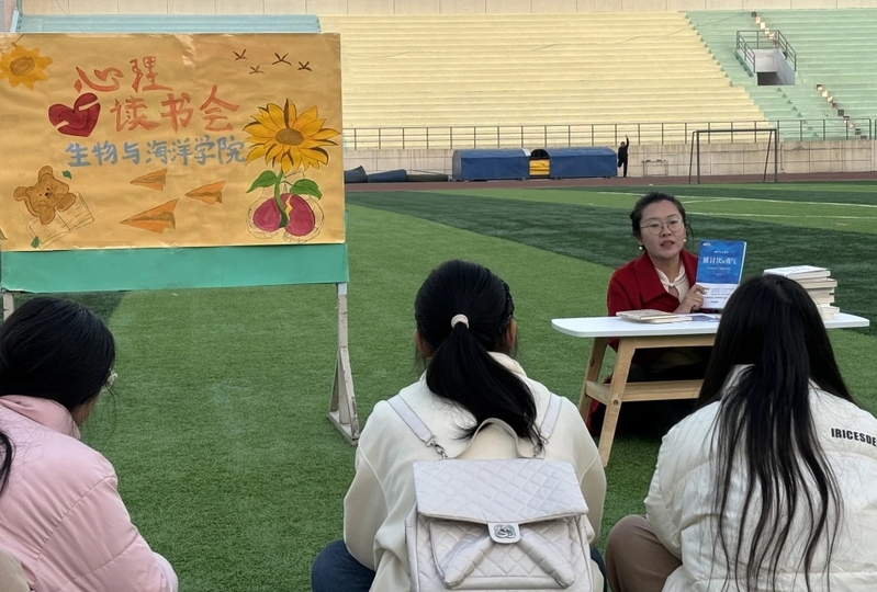 为满足学生日益增长的心理健康需求,更好预防和应对大学生心理健康问题,提供心理健康资源和服务,生物与海洋学院于11月24日下午在操场举办心理读书会活动。活动由心理驿站站长戴玉镯主持,24级学生积极参加。
