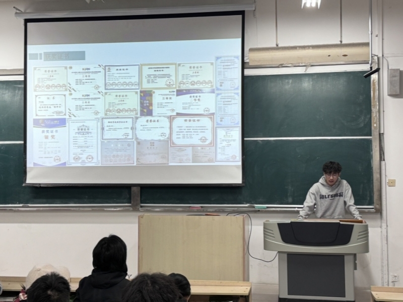 分享会上,张文涛首先为大家详细介绍了自己参与创新创业竞赛的心得体会。他提到,参与竞赛不仅能够锻炼个人的创新能力和团队协作能力,更能拓宽视野,紧跟行业前沿动态。他结合自己多次参赛的经历,分享备赛经验,包括如何精准选题、如何高效组建团队、如何科学规划时间等实用技巧。这些经验之谈,无疑为在场的同学们提供了一份详尽的“参赛指南”。
