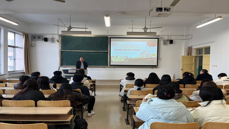 任怀坤从“三牛精神”的内涵出发,结合丰富的事例向同学们阐述了“孺子牛”的勤恳踏实、“拓荒牛”的开拓创新、“老黄牛”的吃苦耐劳,生动形象地展现了“三牛精神”在不同时期的体现与价值,他鼓励同学们在学习和生活中要像“三牛”一样,不畏困难,坚韧不拔,踏实耕耘,勇往直前。