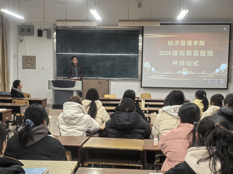 为培养适应新时代经济社会发展需要的高素质应用型人才,经济管理学院特设立创新实验班项目。11月27日晚,首届创新实验班开班仪式在6405教室举行。开班仪式由经济管理学院副院长刘明主持,院长刘伟出席并讲话。