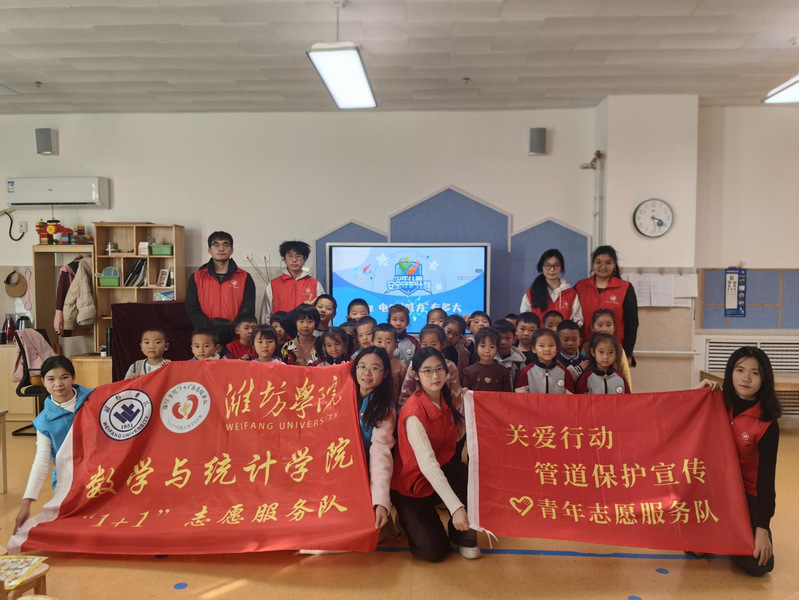 为提高树立安全保护意识,普及管道基础知识,11月29日,数学与统计学院“1+1”志愿服务队走进潍阳学校附属幼儿园,围绕用电安全、浴室安全、食品安全和管道安全等主题,开展“关爱少年儿童成长”安全知识宣传教育活动。