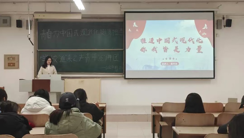 姜作冰老师解答了中国式现代化的含义以及作为新时代的中国青年能为中国式现代化做什么的疑问。她提出,推进中国式现代化,你我皆是力量,新时代青年应将个人的理想追求融入国家发展的时代洪流中,以“小我”成就“大我”,书写无悔的青春篇章。