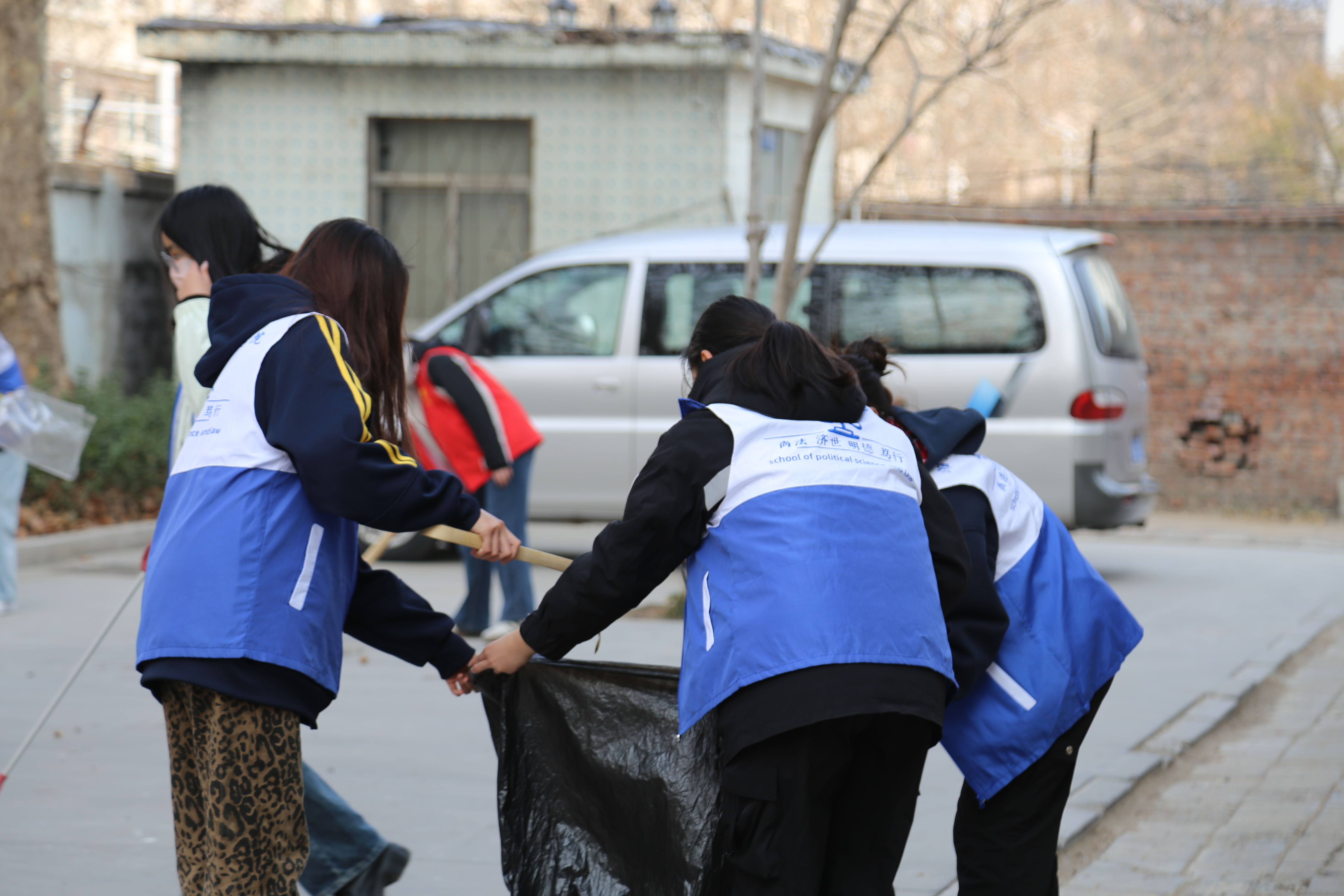 活动当天,志愿者们在新城街道鸢都社区集合。与社区负责人对接后,他们换上了统一的志愿服装,并领取了清洁工具,整装待发。志愿者们被分为两队,一队负责清理落叶,另一队则拾取垃圾,各司其职,井然有序。在打扫过程中,志愿者们发扬雷锋精神,不怕脏、不怕累,认真清扫每一个角落,不放过一片纸屑、一个烟头。他们的身影在小区内忙碌穿梭,用实际行动诠释了大学生的社会责任感和奉献精神。