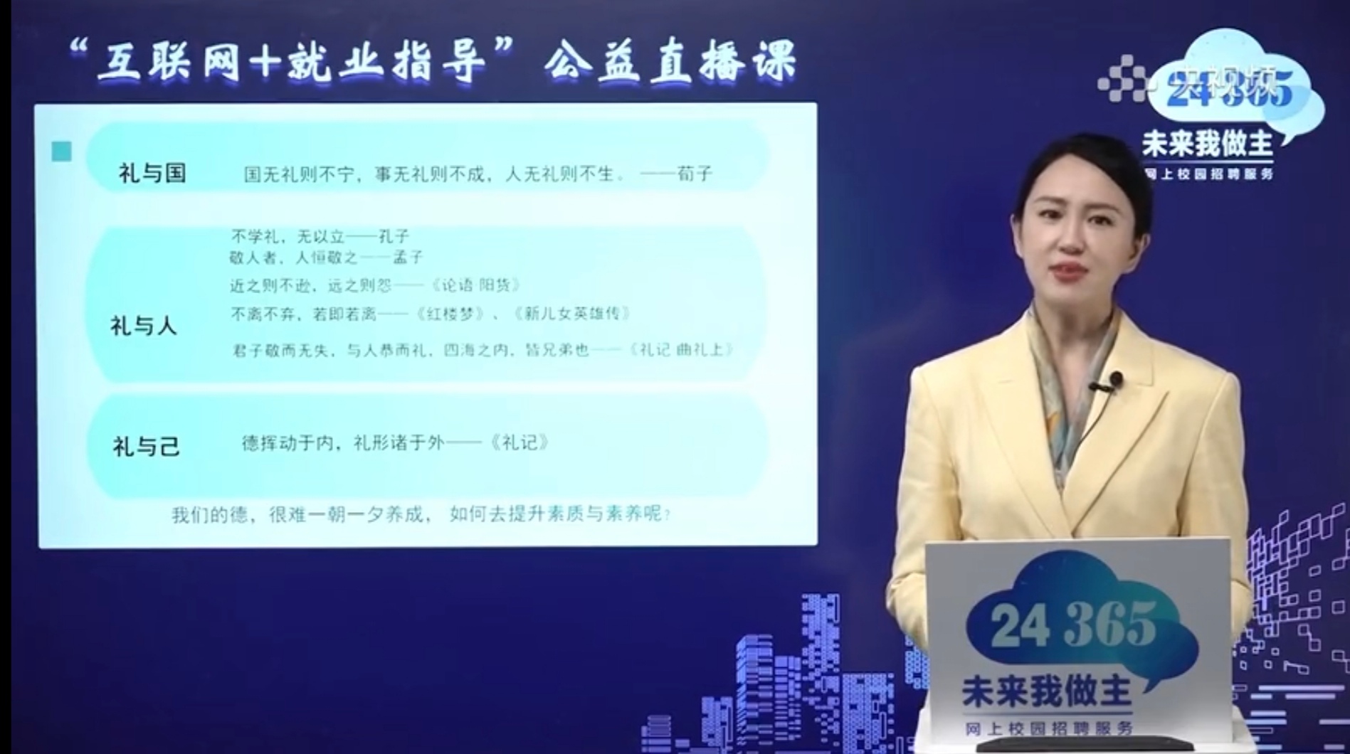 为助力大学生提升就业能力,法学院于3月2日晚积极组织观看了由教育部高校学生司指导、教育部学生服务与素质发展中心主办、中国教育电视台与万学教育协办的“互联网+就业指导”公益直播课。此次直播课由南京大学机关党委常务副书记、生涯教育研究中心主任刘慧老师受邀担任主讲嘉宾,以“求职型综述:领悟生涯智慧 开启精彩人生”为主题,为同学们带来一场深度求职指导课。