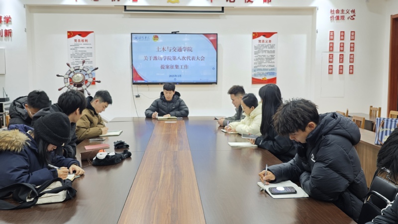 3月4日,土木与交通学院学生会主席团成员在致远楼6104教室启动第八次学生代表大会提案征集工作。此次会议由主席团成员韩忠顺主持。