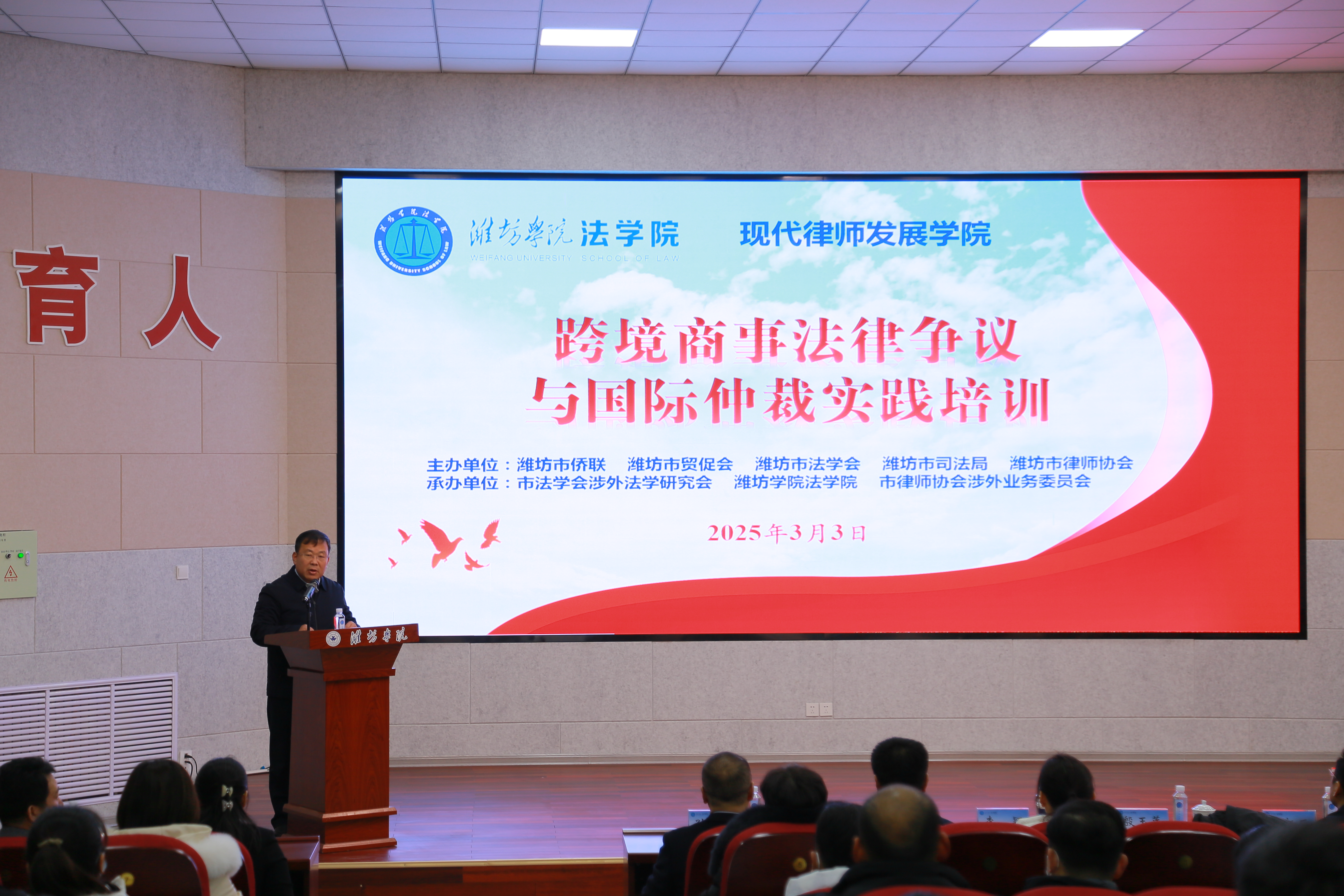 3月3日下午,现代律师发展学院2025年首场报告会在齐贤楼2109会议室举行。本次报告会特邀英国大律师Cecilia Xu Lindsey就“跨境商事法律争议与国际仲裁实践”为主题开展讲座。全市律师行业及涉外企业代表、涉外法律研究人员、潍坊学院师生代表共计160余人参加报告会。