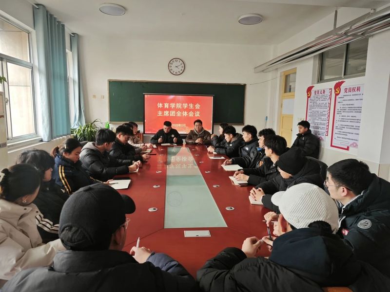 为进一步加强团委学生会内部的沟通与协作,强化学生会队伍建设,更好地服务学院和学生。3月4日,体育学院于T206会议室召开第二十四届团委学生会主席团工作会议。体育学院学工办主任高欢、团委副书记孙圣林、2023级辅导员陈红、2024级辅导员梁笑以及第二十四届团委学生会主席团成员参会。