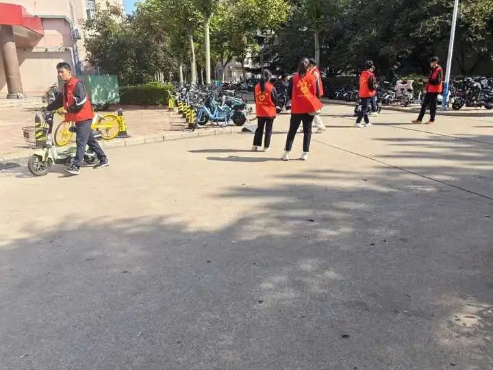 活动伊始,社会实践负责人将本次文明停车引导行动的时间与地点分配完成之后,有条不紊的开展文明引导和规范整治。志愿者们分别在中午、下午以及晚上三个时间段对分配好的学生公寓中间道路及两侧区域的电动车、自行车停放秩序进行巡查与整理。志愿者们主动上前,引导学生将电动车、自行车按顺序停放至划线区域内,提醒同学们做到车头朝外、车身摆放整齐,避免出现占道停放、随意堆放等不文明现象。对于部分乱停乱放的车辆,志愿者们耐心劝导并协助调整到规范停车位置。他们用温暖的笑容和贴心的服务,引导学生们树立文明停车意识,共同维护良好的校园环境。