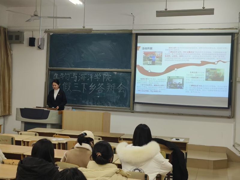 为深化实践育人成效,展现青年学子责任担当。2025年3月5日,生物与海洋学院举行寒假“三下乡”实践活动答辩会,学院团委负责人蒋新放与各实践团队负责人共同参会,通过总结交流进一步弘扬志愿服务精神,以专业力量赋能乡村振兴。