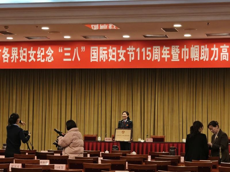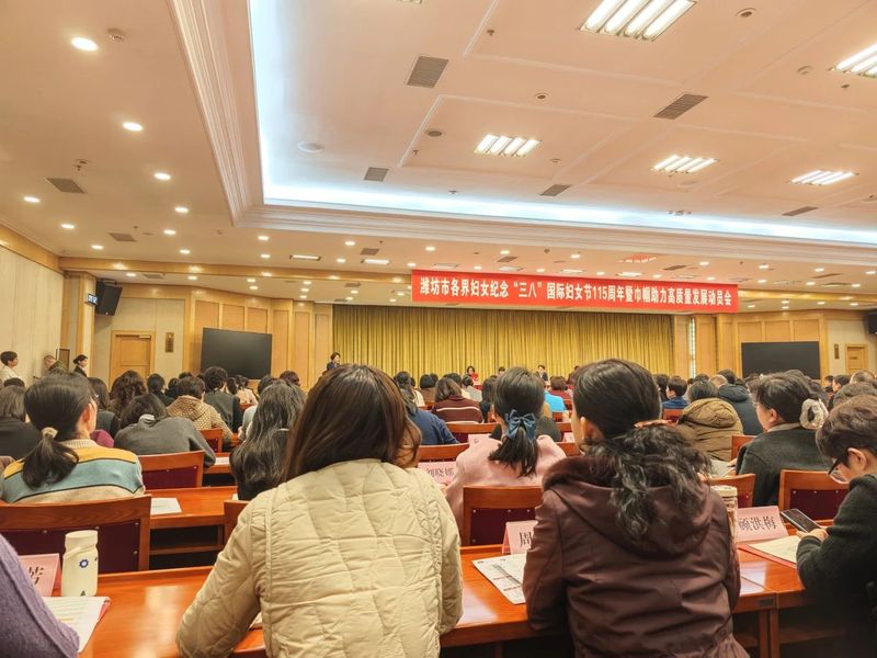 2025年3月5日,潍坊市市级机关综合办公大楼迎来了潍坊市各界妇女纪念“三八”国际妇女节115周年暨巾帼助力高质量发展动员会。星火志愿团队积极参与其中,以热情与专业为活动的顺利开展贡献力量。