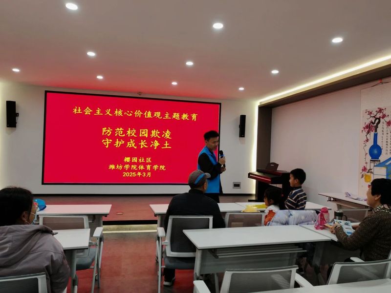 为了守护儿童的心理健康,为他们的成长保驾护航,帮助他们在安全、关爱的环境中塑造健全人格,在校园中预防校园欺凌,更好地保护自己。2025年3月8日体育学院爱心服务队联合樱北社区开展“拒绝欺凌,保护自己”志愿服务活动。