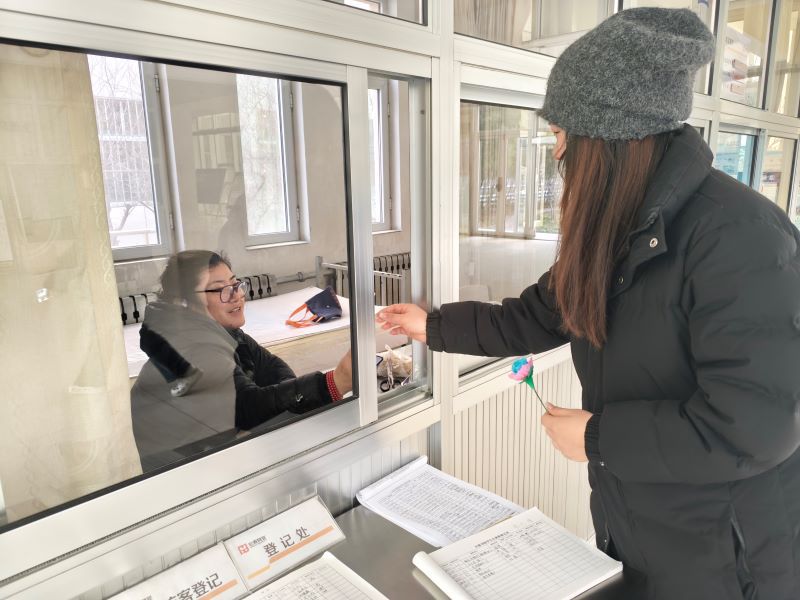 制作完成后,同学们手捧花朵,走到餐厅工作人员面前,送上节日的问候:“阿姨叔叔,你们辛苦了!今天是三八妇女节,祝你们节日快乐!”工作人员接过花朵,脸上洋溢着幸福的笑容,连声道谢:“谢谢孩子们,我们很开心!”