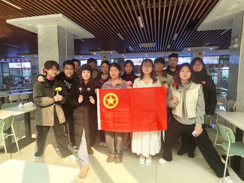 活动当天,团支部成员齐聚学校餐厅,共同手工制作花朵。大家分工明确,现场气氛热烈而温馨,欢声笑语不断。在同学们的共同努力下,一朵朵色彩鲜艳、形态各异的花朵逐渐成型,每一朵花都凝聚着同学们的心意,承载着对餐厅工作人员深深的敬意与祝福。