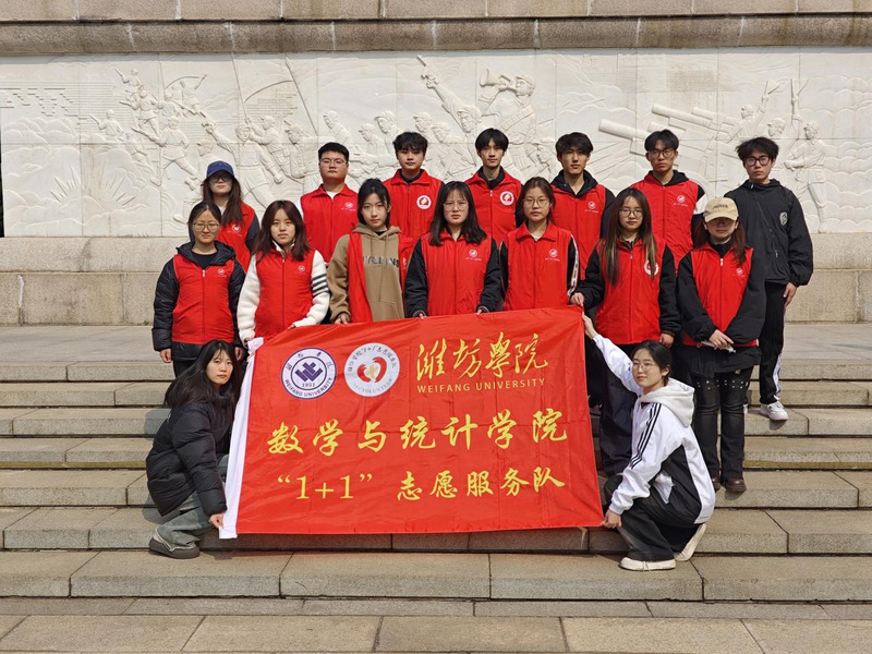为追思革命先烈,赓续红色血脉,厚植爱国主义情怀,3月8日上午,数学与统计学院“1+1”志愿服务队走进潍坊市烈士陵园开展志愿服务活动。