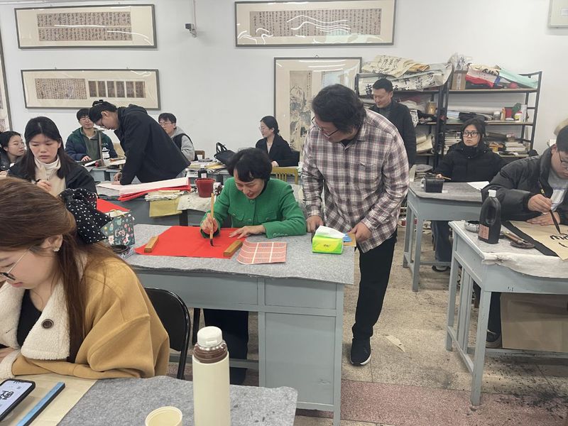 本网讯 3月10日,徐梅到美术学院现场听课,调研2022级书法专业《临创转换训练:篆书》课堂教学情况。徐梅认真记录教学流程、师生互动细节以及教学方法的运用情况,充分肯定授课教师深厚的专业知识储备、生动形象的讲解方式和多元化的教学手段。在练习环节,徐梅与同学们共同体验了“印从书出、以书入印”理念下篆刻与书法创作衔接的内在联系,课堂气氛活跃,同学们学习积极性高。