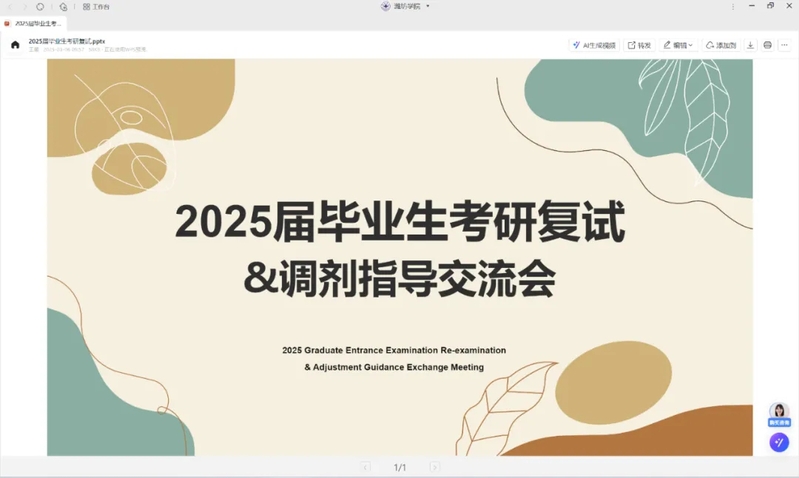 为助力2025届考研学子科学备战复试,顺利调剂,2025年3月11日晚,我院通过腾讯会议平台举办了“2025届毕业生考研复试&调剂指导线上交流会”。此次交流会邀请了4位成功上岸的学长以及专业老师,吸引了众多2025届考研学子参与。
