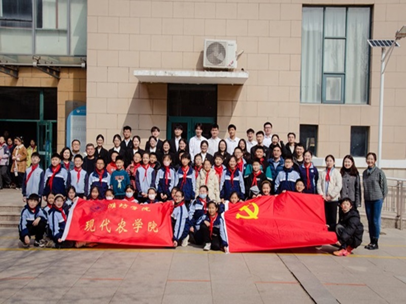 春风和煦,绿意萌发。为弘扬新时代雷锋精神,践行“绿水青山就是金山银山”的生态文明理念,强化党员党性修养,探索党建带团建工作机制, 2025 年 3 月 14 日,潍坊学院现代农学院党委和团委联合潍坊市志远小学,在志远小学共同开展“雷锋精神进校园,薪火相传担使命 —— 大学生党员与少先队员同升一面国旗” 主题党日活动,共上一堂 “大思政课”。现代农学院党委副书记、副院长张骞,志远小学校长李祎等领导及师生代表参加活动。