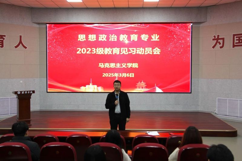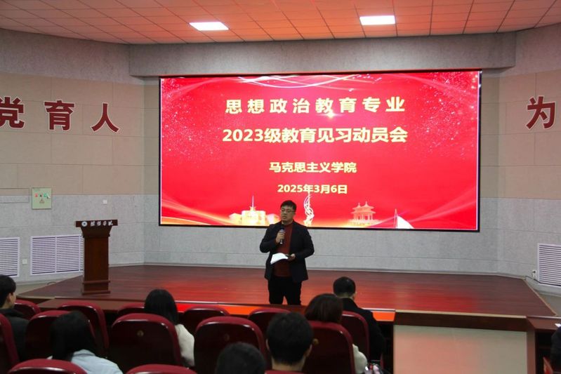 3月6日下午,马克思主义学院于2109学术报告厅召开2023级思想政治教育专教育见习动员会,马克思主义学院副院长赵军出席动员会并讲话。