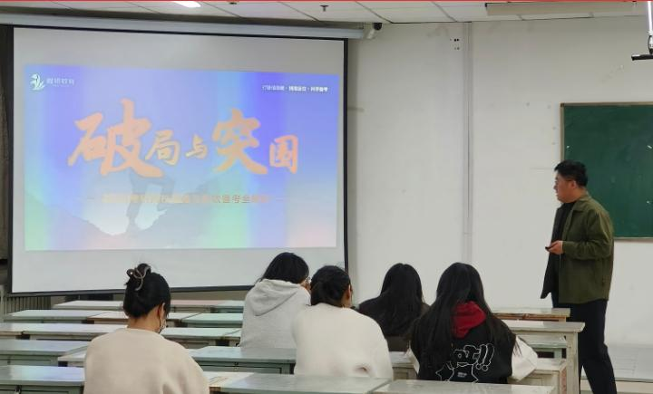 会上,主讲老师从考研对个人学术发展与职业规划的重要性切入,鼓励同学们积极备考,并详细解析了2025年考研春季备考策略。针对基础课程复习与专业知识体系构建,老师提出“阶梯式学习法”,建议学生分阶段夯实基础、强化重点,同时结合真题案例梳理高频考点。针对院校选择这一关键环节,结合历年分数线、招生政策等数据,为同学们提供了科学择校的方法论,并分层解析各梯度院校的报考要点,强调应综合考量学科实力、地域资源与个人发展规划。活动现场气氛融洽,同学们围绕跨专业备考难点、复习时间分配等问题踊跃提问,主讲老师逐一解答并给出个性化建议。