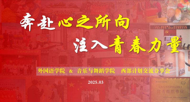 3月13日,音乐与舞蹈学院联合外国语学院在线上举办了2025年“西部计划”志愿者交流分享会。本次会议邀请到了2023届毕业生陈星、赵昶瑞,2024届毕业生王菲分享参与“西部计划”的亲身感悟。学院学工办主任李丹、团委副书记王晓颖,外国语学院学工办主任殷亚文参与本次会议。本次分享会吸引了对西部计划感兴趣的100余名在校生前来听会。