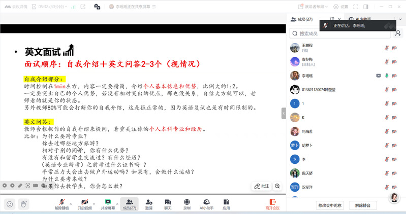 在答疑环节,学子们就跨专业调剂、复试着装、英语口语提升等实际问题进行了深入的交流与讨论。同学们表示,学长学姐的经验分享让他们对复试有了更清晰的认识和准备方向。