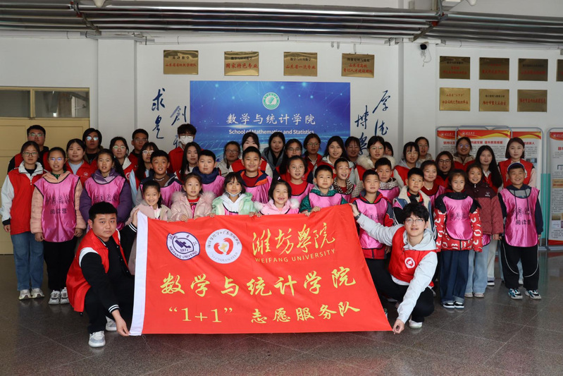 为弘扬雷锋精神,激发青少年数学学习兴趣,3月16日上午, “1+1”志愿服务队携手大虞社区少年之家在数学与统计学院举办“数说雷锋”数学思维提升营潍坊市基本民生保障服务中心殷永强、院团委副书记宋志鹏出席本次活动。