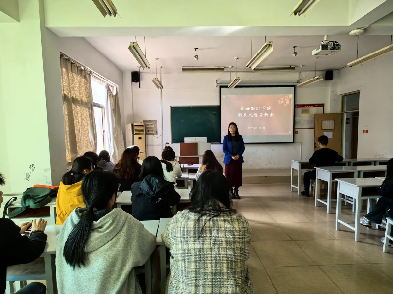 3月18日,北海国际学院在安顺校区召开期末考试成绩分析会,会议由2024级班主任王欣仙主持,各班级学生干部代表参加。