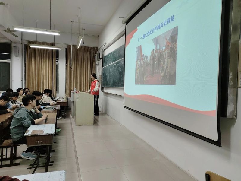 讲座伊始,宣讲团成员以生动的语言和丰富的历史资料,向同学们详细介绍了遵义会议的历史背景、主要内容和重大意义。她指出,遵义会议是中国共产党历史上一次生死攸关的转折点,确立了毛泽东同志在党和红军中的领导地位,挽救了党、挽救了红军、挽救了中国革命。宣讲团成员通过讲述会议期间的关键人物和感人故事,让同学们深刻感受到老一辈革命家在危急关头的智慧与勇气。