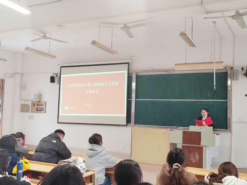为深入学习贯彻党的二十大和党的二十届二中、三中全会精神,进一步夯实党的组织建设基础,严格把控党员发展质量,切实加强党的后备力量培养,筑牢党员队伍建设的“入口关”。3月31日,文史学院(文化与旅游学院)在致远楼6202举办入党积极分子开班仪式。学院党委副书记、副院长张芳芳为第42期入党积极分子以《以实际行动做一名合格的入党积极分子》为主题,讲授入党积极分子培训第一课。
