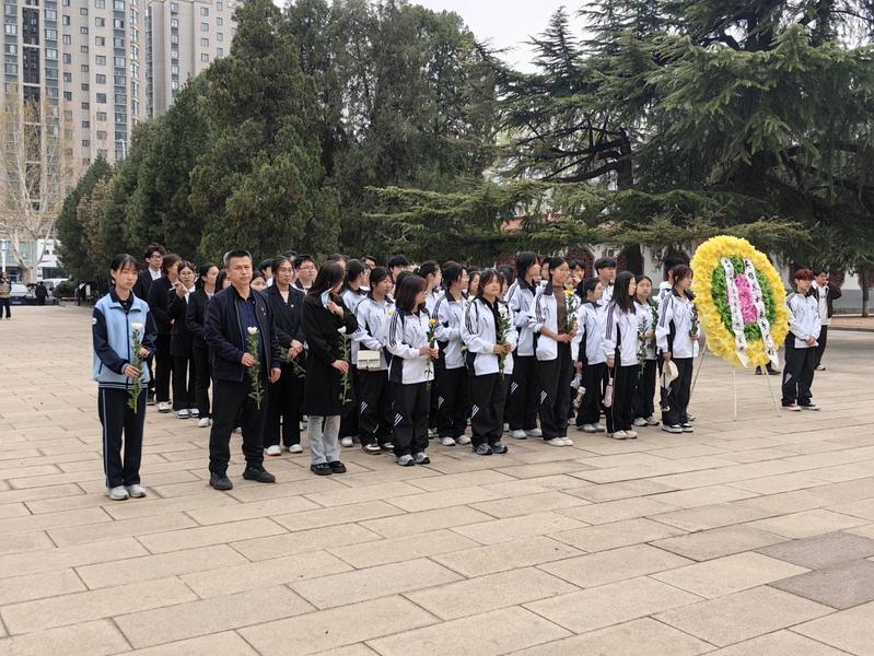 下午三点,师生们在革命烈士纪念碑前整齐列队,庄严肃立,齐唱国歌。两名学生向革命先烈敬献花圈。大家低头默哀,深切缅怀革命先烈的丰功伟绩。学生代表王雨凡呼吁同学们要继承先烈遗志、勤奋学习,为中华民族伟大复兴贡献自己的力量。讲解员深入讲解了革命斗争中先烈们的英勇事迹。在潍县战役烈士墓区,师生们为烈士献花,细心擦拭墓碑上的尘土,用最质朴的方式表达对英烈的无限敬仰。