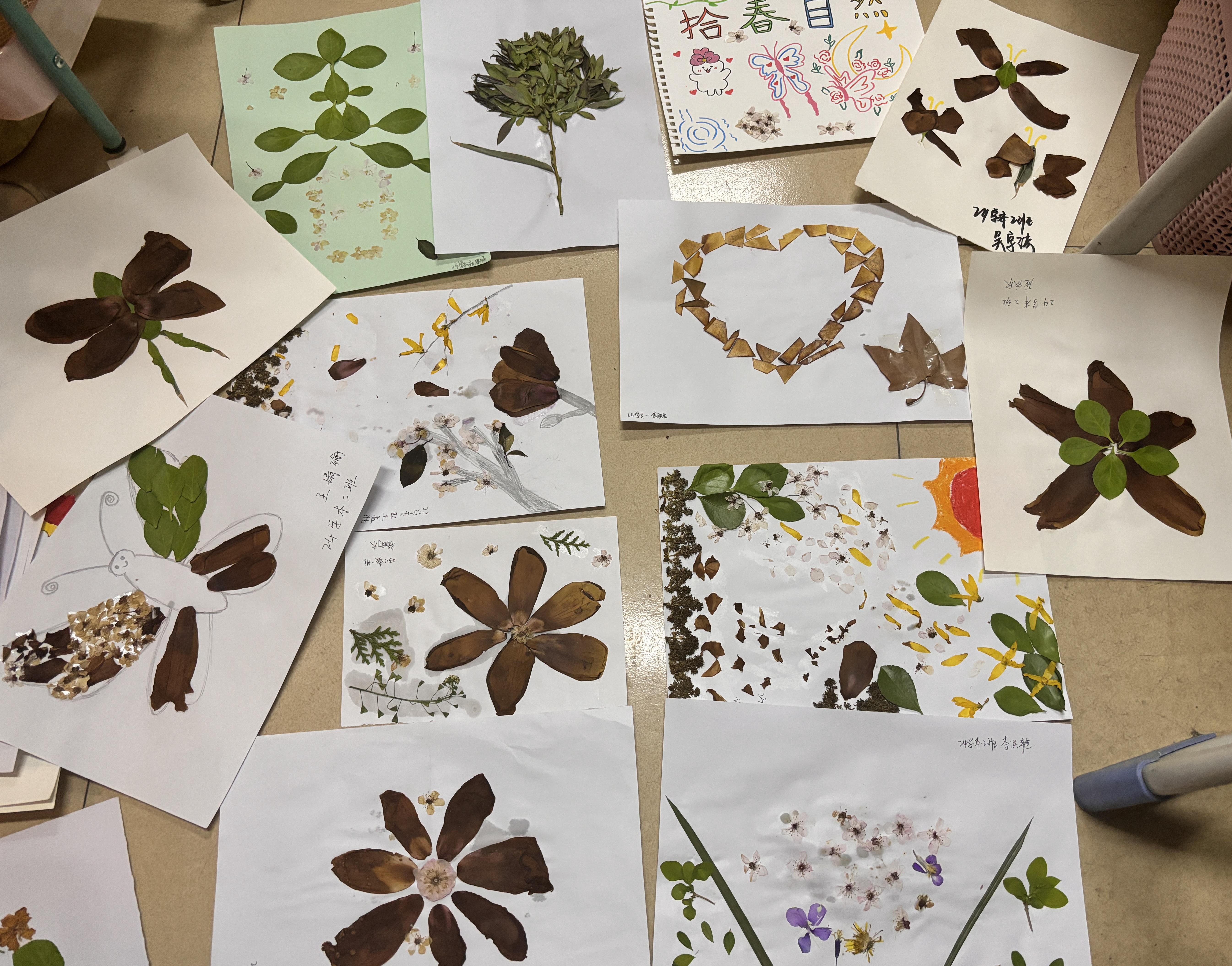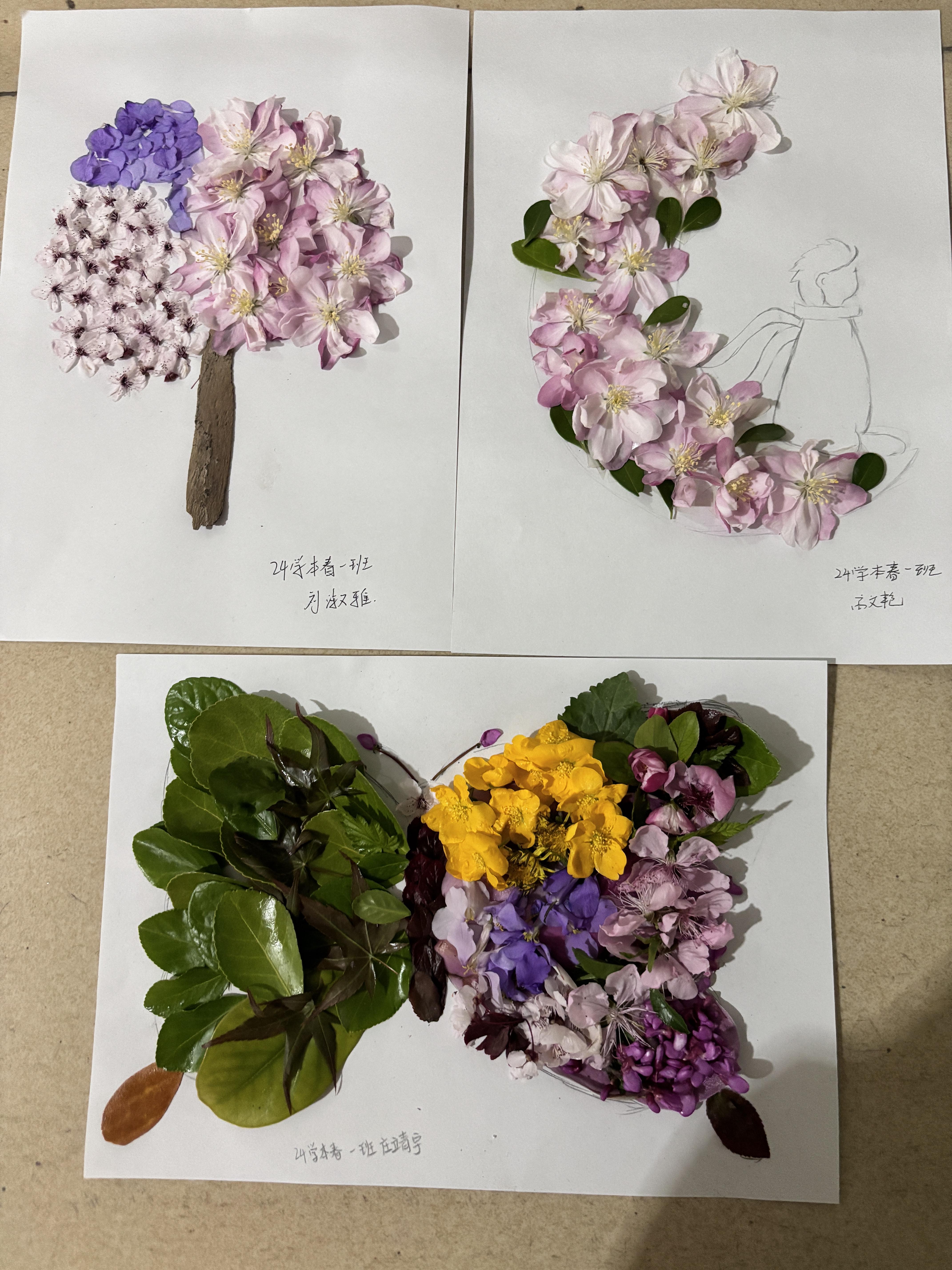 活动期间,校区内处处可见同学们穿梭在花丛树下,精心收集创作材料的身影。活动形式丰富多元,拼贴、拓印、滴胶保存等各种创作手法齐上阵,充分激发了同学们的创意潜能。植物科普融入艺术创作过程,寓教于乐,让同学们在感受美的同时,也增长了知识;而仅使用凋落花叶的规定,更是将“零废弃”环保理念落到实处。同学们纷纷表示收获颇丰:“这次活动让我重新认识了春天,原来那些被忽视的落花落叶能创造出这么美的作品。”